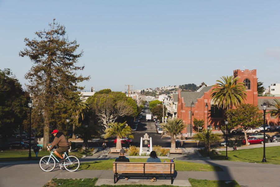 San Franciscans flock to the Mission for dinner, for drinks, to see music, visit a gallery, or perhaps just to lie in the sun with the crowds at Dolores Park. But this is not just a place to congregate at night; Mission Dolores is well known for the quiet, narrow lanes connecting its larger streets, tree-lined blocks where neighbors sit on their front steps, sharing the day’s news and soaking in gorgeous views of the downtown skyline.
