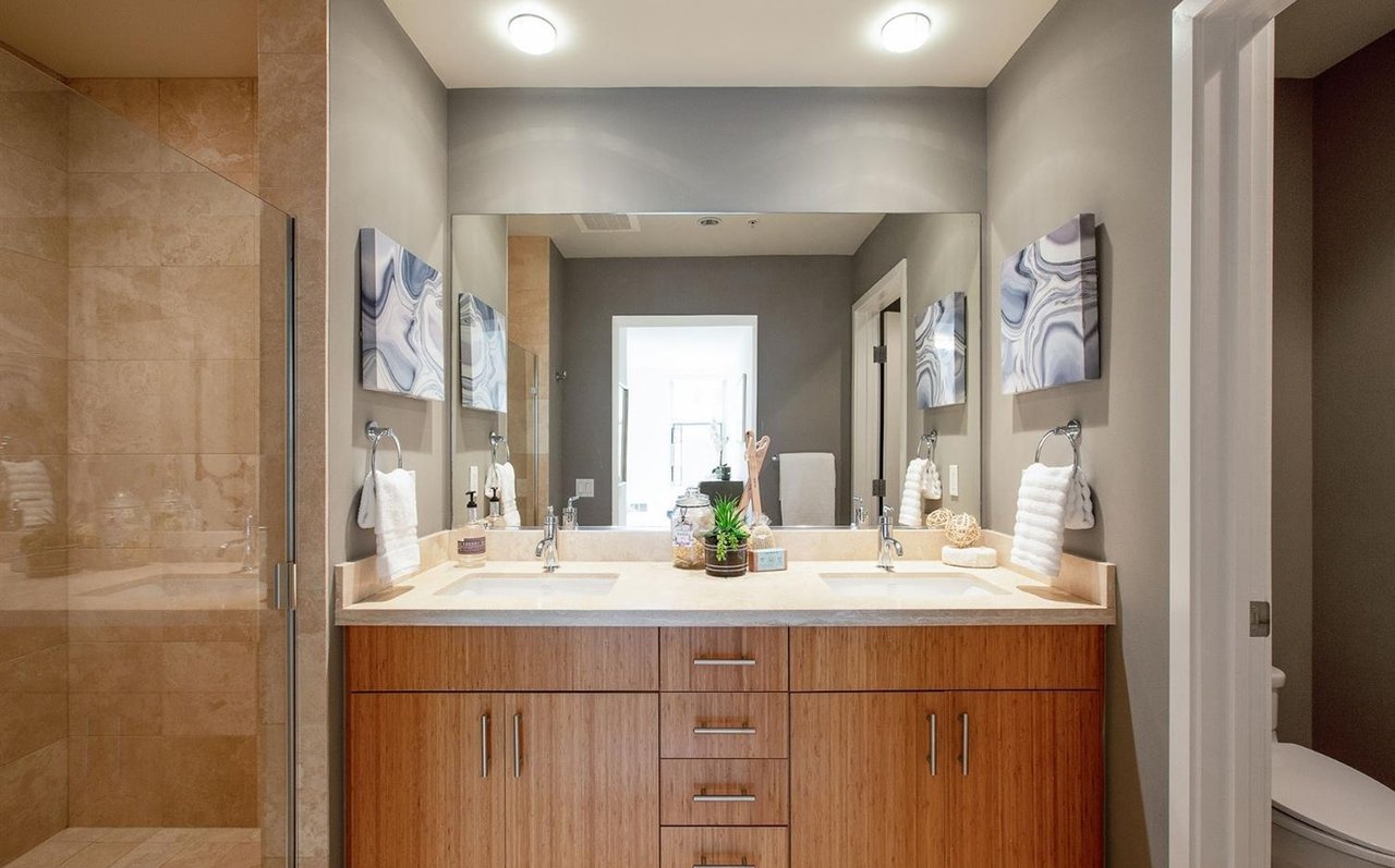 Stylish condo conveniently located in vibrant Mission Bay. Courtyard setting with private Patio. Open Living/Dining/Kitchen with well-designed Office Area and flex space. Upgrades include handsome hardwood floors in living area, ceiling fan and custom window coverings. Stainless steel Kitchen appliances, gas range, granite counters and bamboo cabinets. Generous closet space. En suite Master with oversized walk-in closet. Limestone Master Bath. Guest Bedroom with large closet. New carpet in the bedrooms. Full-sized stackable washer and dryer. Close to Cal Train, Gus's Market, Oracle Park and Chase Center!